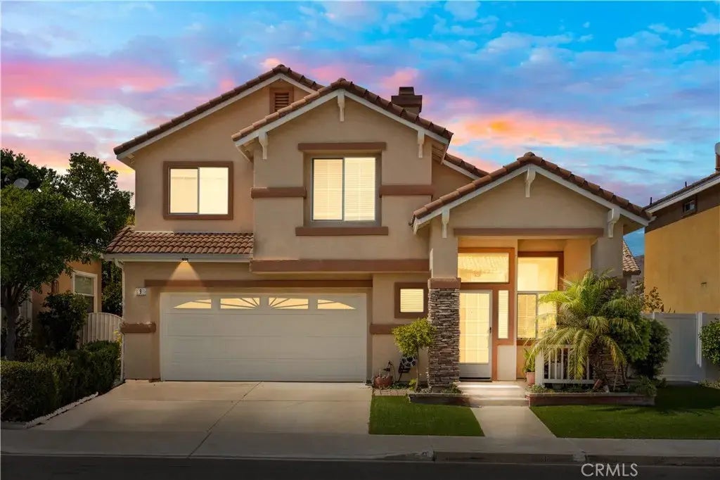 Nestled in the heart of Foothill Ranch and in the highly desirable community of Summerview. This 3 bedroom, 2.5 bath home is move-in ready, offering a perfect blend of comfort, style and convenience. The backyard has a private recently renovated of landscaping with new artificial grass and new side gate. As you step inside, you will be welcomed by a formal living Room, with high ceilings that elevate the ambiance with a sense of spaciousness and airiness. Natural light floods the room, accentuating its design, features a romantic fireplace and easy-to-maintain tile flooring the lower level. The kitchen has a white tile countertop and Dine in area is large enough to have a full-sized dining table. Upstairs, the Master Suite is bright and high ceiling , total privacy and a large walk-in closet. The master bathroom has dual vanities and bath tub. There are two additional bedrooms upstairs and both of those rooms are bright and good size to hold Queen size beds. Interior shows proud of ownership, well maintained and clean. The garage has Built-In storage rack. The driveway could early park two cars. An excellent home in a perfect family-oriented neighborhood. Nearby amenities include Foothill Ranch Community Park with Pool, Spa, Parks, Tennis Courts, and Hiking and Biking trails in the nearby Whiting Ranch Natural Reserve, Schools, the Foothill Public Library, restaurants, a dog park, shopping, and major freeways are just moments away, offering unparalleled convenience.
