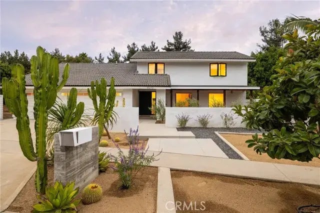Welcome to 4212 Dorthea St, an exquisite residence nestled in the heart of Yorba Linda's vibrant community. This beautifully renovated home, designed by an Oscar-nominated film director, seamlessly blends luxury with functionality. Spanning 2,173 square feet, this 5-bedroom, 3-bathroom gem offers a thoughtfully crafted layout across two levels. The ground floor features three bedrooms, including the serene master suite, along with an open-plan living area ideal for gatherings. Revel in the grandeur of tall ceilings and abundant natural light from multiple double glass doors. The heart of the home, the brand-new kitchen, boasts custom-designed cabinets and high-end appliances, perfect for culinary adventures and entertaining. Recent upgrades are impressive and extensive: new electrical and lighting, stunning hardwood floors, smooth stucco exterior, and an inviting front porch with artistic wall designs. The remodeled bathrooms and kitchen include custom tile work and fixtures. Outdoors, enjoy the new concrete work, an outdoor shower, and a brand-new jacuzzi with updated tile and heater. The expansive backyard, ripe with potential, could accommodate a back house or infinity pool with a separate entrance, ideal for an Airbnb. Step outside and explore beautiful walking, biking, and horse trails right from your backyard. The neighborhood also offers a range of amenities within a 5-minute drive, including a shopping center with Regal Cinema, Bristol Farms, restaurants, and workout studios. The nearby Yorba Linda Library, Cultural Arts Center, and the state-of-the-art Yorba Linda