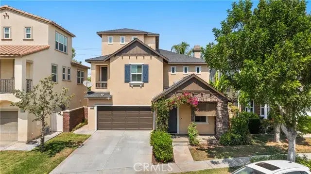 Prepare to be charmed by this stunning three-story residence nestled in the picturesque, tree-lined Preserve community! This home is an entertainers dream, offering versatility for both intimate gatherings and larger events. The front living room provides a cozy setting for smaller, personal meetings, while the open and airy family room seamlessly connects to the dining area and spacious kitchenideal for hosting larger parties. The kitchen is a chef's dream, equipped with an oversized center island, stainless steel appliances, granite countertops, ample cabinet space, generous prep areas, and a five-burner gas cooktop. If youre expecting visitors, the downstairs bedroom and full bath offer a perfect guest suite. At the end of the day, retreat to the inviting master suite or indulge in the luxurious master bath, which features a soaking tub, a large walk-in closet, dual vanities, and a separate shower with a built-in bench. The second floor includes a convenient laundry room with storage and folding space, plus two additional bedrooms and another full bath. The third story offers a private haven with a loft area for gaming or movie nights, a fifth bedroom, and a full bath. Award winning school Cal Aero Preserve Academy (k-8th) right within the community. 7.5 miles to Chino Spectrum Town Center. 9 miles to Ontario Intl Airport, 11 miles to Ontario Mills, Lowest HOA in the area, amenities include a swimming pool, clubhouse, BBQ area, various sports courts, and a playground. Don't miss the chance to elevate your suburban living experience