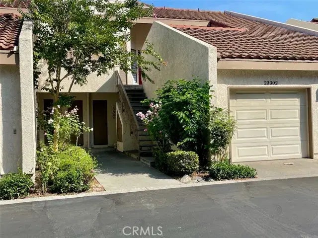 Alta Finisterra, also known as Finisterra on the Green, is a wonderful gated condominium community nestled between Lake Mission Viejo and Casta Del Sol public golf course. The grounds are well kept and feature hiking trails, a nice wooded area for exploring and a practice golf hole for the exclusive use of the residents. This unit is just a stones throw from the fantastic community pool with sun and shaded areas and several bar-b-ques. Lake Mission Viejo access and membership is available to residents as well where you can enjoy the beach, rented boats, fishing and the summer concert series. This 2 bedroom , 1 bath home is an upstairs unit with two floors and features high cathedral ceilings and large windows allowing great light and views from the living room area. The living room and primary bedroom lead to a private patio overlooking the valley below. The kitchen has ample storage and a breakfast nook and is well equipped including a gas range, refrigerator and wine fridge. There is an easy pass thru between the kitchen and dining area. The upstairs has a loft area open to the living room and a built out dedicated office area which can be repurposed as needed. A large detached single car garage with storage and garage door opener is adjacent from a dedicated covered carport.
