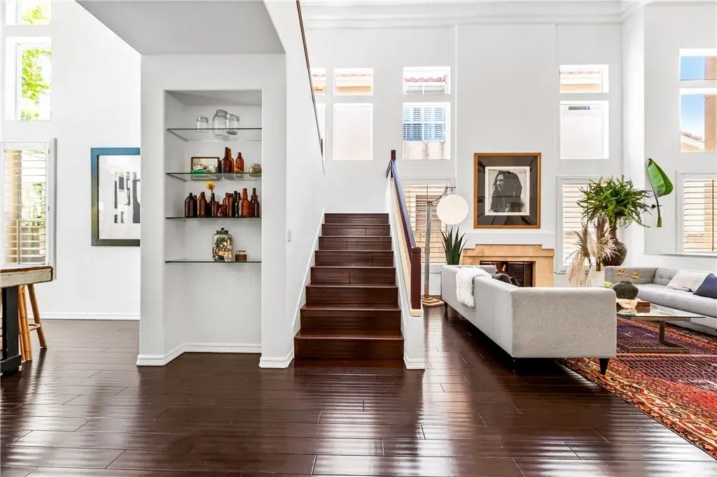Experience elevated living in this beautifully updated Pacific Hills residence, situated on a peaceful and secluded cul-de-sac. The expansive Bonair floor plan boasts soaring cathedral ceilings, a grand formal dining room, and multiple living spaces, each with its own fireplace, including the family room. Designed for entertaining, the outdoor area features a picturesque backyard view, tropical landscaping, an above-ground spa, built-in BBQ, and an expansive outdoor fireplace, all backing onto a serene greenbelt. Inside, elegant Cherry Hardwood floors and beige Travertine accent the living areas. The main floor includes a convenient bedroom and full bath, ideal for guests or extended family. The entertainer's kitchen opens to the family room and is outfitted with ample cabinetry, granite countertops, and premium upgrades. Unwind in the luxurious Master Suite, complete with a fireplace, private balcony, vaulted ceilings, and a Jacuzzi in the master bath. The Master Bathroom is equally impressive. Upstairs, a large bonus room offers a perfect play area for kids, a spacious office, or a hangout space, complete with a balcony perfect for enjoying a morning coffee. Freshly painted and move-in ready, this home includes a three-car garage equipped with quiet comfort fans for both the garage and attic. Energy efficiency is ensured with 21 owned solar panels and a Tesla battery backup system. Additional features include a soft water system, a tankless water heater, and plenty of parking. Conveniently located near top-tier shops, fine dining, and major freeways, this home is within t