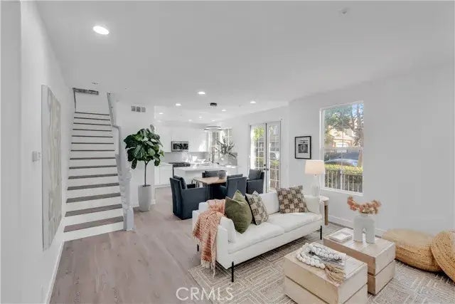 This beautifully updated end-unit offers an abundance of natural light, creating an inviting and warm atmosphere throughout. Featuring brand new luxury vinyl flooring, sleek quartz countertops, all-new cabinets, and vanities, no detail has been overlooked. The kitchen is equipped with stainless steel appliances and new hardware, seamlessly blending modern style with functionality. Enjoy meals and coffee at your breakfast bar or in the cozy dining space. The main level includes a spacious living area with a fireplace, an open kitchen, a flex-space currently being used as an office, and a half bathroom; perfect for entertaining. Step out of French doors onto the patio and enjoy serene views of the neighborhood. Upstairs, you'll find the three bedrooms, a spacious bonus area, and separate laundry room. The primary suite boasts a walk-in closet, dual sinks, a soaking tub, and a separate shower, offering a true retreat. Enjoy access to hiking trails, sport courts, dog park, pool, spa, picnic area, BBQ area, fire-pit, and clubhouse. Conveniently located near shops, restaurants, top-rated schools, and the 5 and 73 freeway.