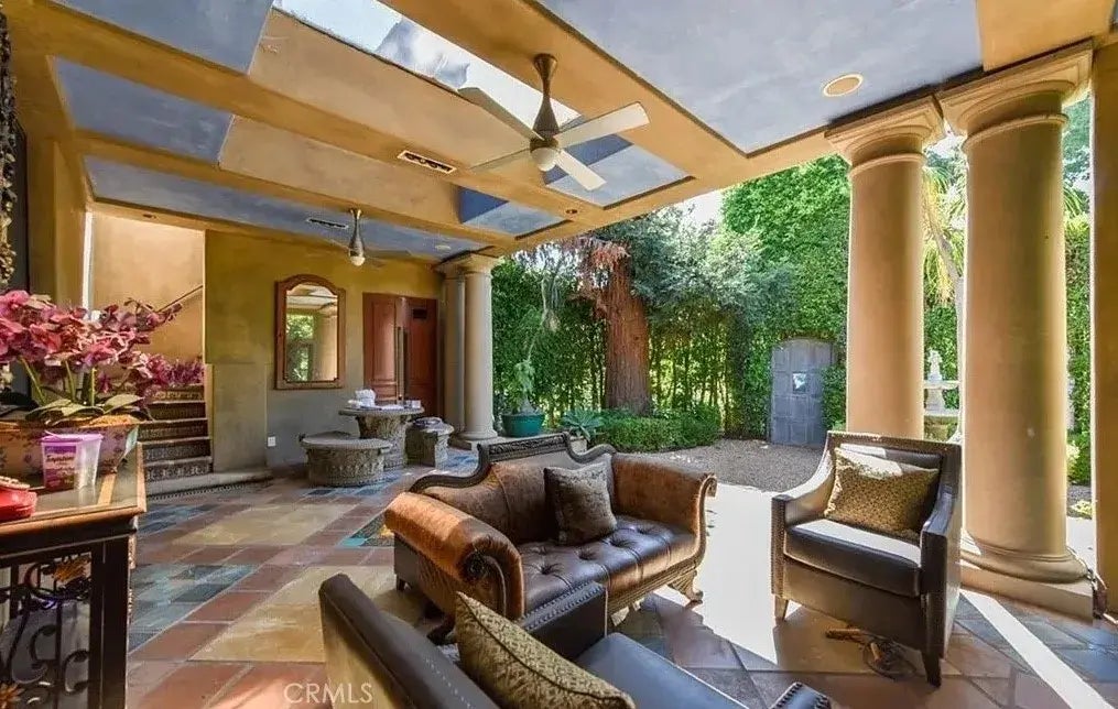 The Castle on Grand Oaks, a remarkable masterpiece of architectural design, brought to life by renowned designer Van-Martin Rowe. Nestled in the tranquil neighborhoods of Pasadena, this property is one of the most iconic homes in Los Angeles, featuring a unique blend of history, art, and modern luxury.Transformed in 2007, the property showcases rare tiles sourced from the Mediterranean, Europe, Asia, and Morocco. Inspired by the towering sequoia tree that has stood on the grounds for over a century, the home's design creates a seamless connection between the indoors and outdoors, with an emphasis on height and abundant natural light. Soaring 14-foot ceilings create a sense of spaciousness, while nearly 20-foot hedges provide maximum privacy.This home is not only a stunning artistic creation but also highly functional, with 4 en-suite bedrooms, custom built-ins, distressed wood flooring, an intercom system, and skylights throughout to enhance natural light and airflow. The gourmet kitchen features top-of-the-line Sub-Zero and Thermador appliances, complemented by a butlers pantry, making it perfect for entertaining. The master suite offers a luxurious steam bath and views of the courtyard pool, with a raised hearth that allows you to enjoy the fires warmth from your bed. The outdoor courtyard is equally inspiring, with a saltwater pool framed by cantilevered beams that create a waterfall effect, giving it a spa-like feel. The rooftop, inspired by architectural styles from Egypt and Morocco, offers a serene space to relax in the hot tub while taking in breathtaking views of t