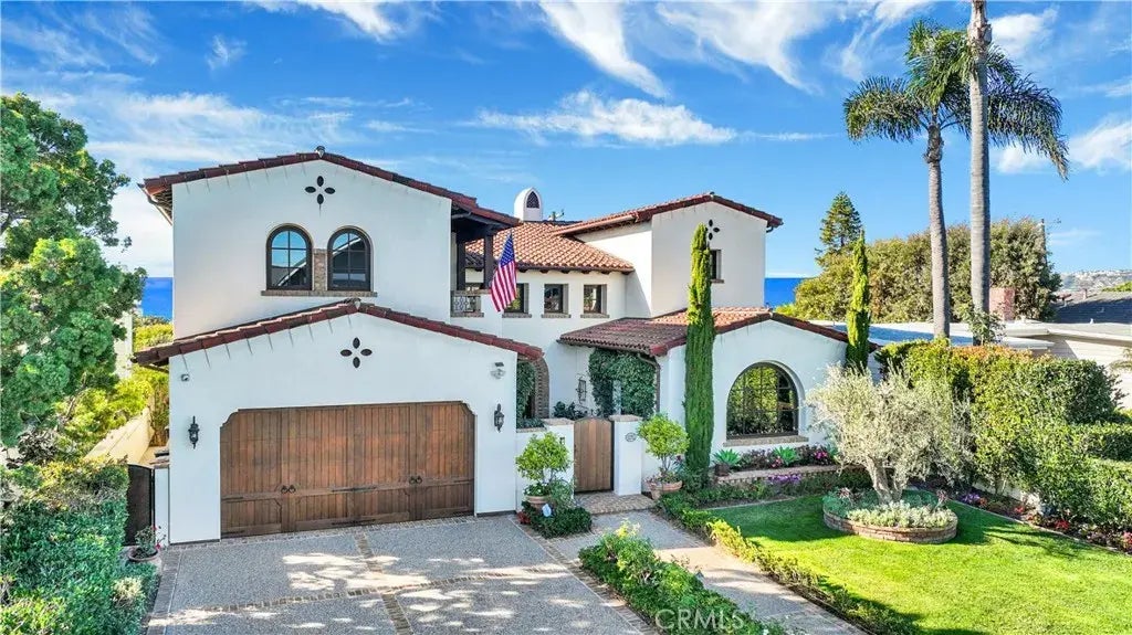 *Seller may offer home furnished.* Panoramic ocean views! Located on historic Chula Vista Avenue in Dana Points Lantern District walking distance to Strands Beach, concerts and restaurants. This exquisite home was built in 2009 boasting the highest quality construction. Beyond the secure gated front entry lies a tranquil courtyard leading to the solid walnut front door. Beautiful ocean and Catalina views greet you as you enter the expansive great room opening to the spacious kitchen and breakfast nook. The gourmet kitchen features leathered quartzite countertops, large center island with wine fridge, top of the line Thermador range, double oven and fridge. Step out to the viewing deck expanding the entire back of the home to entertain dinner parties overlooking the ocean. The main level also boasts a guest suite, formal dining room with built in cabinetry, home office with adjoining full bath and additional powder room. The lower level is a Dana Point rarity! Everyone will love this expansive media and game room boasting custom built ins and dry bar with fridge. Perfect for family get togethers. The top floor leads you to the expansive primary suite boasting vaulted ceilings, outdoor deck to enjoy ocean views, extra large custom walk-in closet, separate makeup vanity, steam shower, and jacuzzi bathtub with fireplace and tv. Also located on the second level are two large en-suite bedrooms. Additional highlights of this exceptional residence include smooth stucco, solid hardwood doors, multizone high efficiency cooling and heating, showcase garage with custom cabinetry and ti