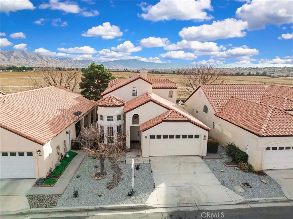 NEWLY UPDATED YARD! Low maintenance gravel, plants, and stones leading to the back patio. Discover the perfect home for your next chapter in life. This beautifully remodeled property offers easy living with all-new laminate flooring, fresh designer interior paint, updated fixtures, and modernized ceilings (acoustic removed). Designed with comfort and privacy in mind, the home features dual primary bedroomsone conveniently located on the ground floor and another upstairs with a private balcony, perfect for morning coffee or quiet afternoons. For added versatility, theres a large bonus room upstairs that can serve as a home office, hobby space, or a cozy secondary living room. Both bedrooms come with spacious walk-in closets, bathtubs, and vanity areas, offering a retreat-like experience. An additional guest bathroom with a shower and an indoor laundry room add to the homes convenience. The kitchen, complete with a breakfast nook and charming neighborhood views, is perfect for casual meals, while the adjacent dining area is ideal for hosting family and friends. The living room, anchored by a warm fireplace, offers plenty of space for entertaining or relaxing. Outdoors, the private patio invites you to unwind and enjoy the fresh air. This home is perfect for people wanting a new beginning, offering a blend of comfort, style, and convenience in a peaceful, low-maintenance setting. This home is located in the coveted Jess Ranch communitya 55+ gated community nestled in the charming town of Apple Valley. Jess Ranch, located in Apple Valley, CA, offers a variety of amenities that
