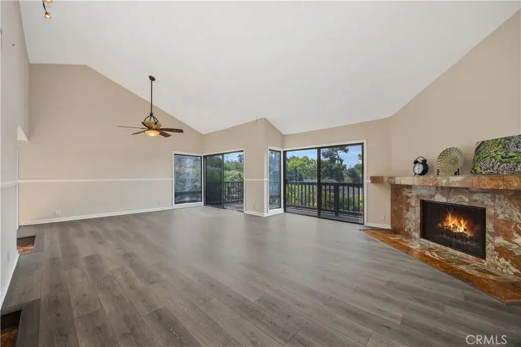 Brand new luxury laminated flooring with price adjustment!! At $1,139,0000, the lowest condo in this fabulous neighborhood of Rancho San Joaquin Interior location, away from the noisy streets! Street level entry with high ceiling! End unit with no one above! South facing with three sets of sliding doors and two balconies! Light and bright with beautiful view! Rarely on the market, this one-of-a-kind single-level home is situated in a beautiful location in the prestigious golf course community of Rancho San Joaquin. Zoned for the number 1 high school in Irvine (University High), the secluded two-bedroom and two-bathroom top-floor condo is an end unit with a street-level entrance. This wonderful home boasts 1468 square feet of living space consisting of an open floor plan that includes a living room with a cathedral ceiling and fireplace, a dining room, and an open kitchen. Enjoy the panoramic view of the neighborhood through the multiple large sliding doors, which also provide access to the oversized private balconies located around the unit. The gourmet kitchen has a granite countertop and is equipped with stainless steel appliances, a double oven, a gas stove top, a microwave, and a water purifier. With an abundant amount of counter and cabinet space, the kitchen provides a beautiful and functional space for even the most demanding chefs. The primary bedroom is very spacious and bright with a cathedral ceiling. The amazing views from the oversized window turn this space into a wonderful personal retreat. The primary bathroom has a large window which brings in an ample amou
