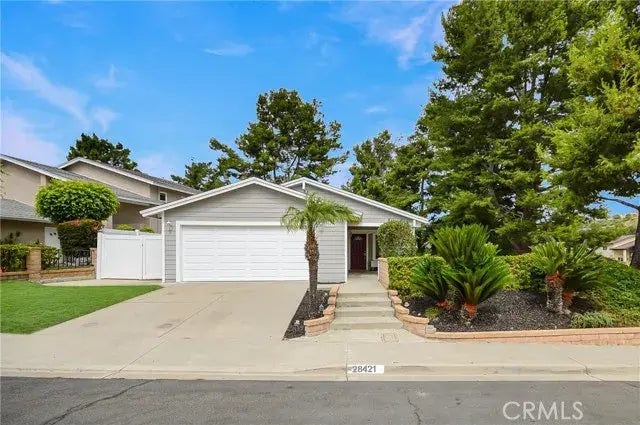Welcome to this charming single-level ranch home, perfectly situated on a peaceful corner lot in a quiet cul-de-sac! This inviting 4-bedroom, 2-bathroom residence offers stunning curb appeal with a tasteful exterior that sets the stage for the beautiful interior. Notable features include a newer furnace, and the owner is in the process of having the whole house repainted. Skylights in the bathrooms allow for plenty of natural light. Step outside to a low-maintenance entertainer's backyard featuring pavers, a built-in BBQ, and a gas fire pitall with breathtaking views of Saddleback Mountain. Notable upgrades include partial PEX piping, a newer roof, dual-pane windows and sliders, and ceiling fans in every room. The 2-car garage offers plenty of storage. Conveniently located within walking distance of an award-winning elementary school and Pavion Park, this home is ideal for outdoor enthusiasts with nearby bike and walking trails, a dog park, and a skateboard parkall nestled within the natural beauty of Mission Viejo. Shopping, dining, and entertainment are just moments away, and as a resident, you'll enjoy exclusive Lake Mission Viejo privileges. These include access to the Yacht Club, swimming, boating, sailing, fishing, summer concerts, two sandy beaches, and a spectacular fireworks show.