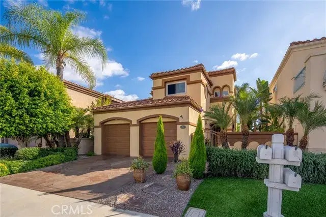 Break the boredom of boxy houses and live in style. This gorgeous view home, located in Foothill Ranch, has all of the features you have been dreaming of. Starting with a custom two-tone paint job and acid/color stained concrete with hand cut designs. Enter through your own private gated courtyard to the front entrance where you will be greeted by soaring 20 foot ceilings and a spacious open floor plan. This model features a main floor bedroom and a full bath which is tucked away for privacy. The second level features a main suite with vaulted ceilings and a large deck with stunning panoramic views. The luxurious attached bathroom has an over sized dual sink vanity with granite counter tops, an impressive custom shower with 4 body sprays, a frame less glass enclosure and is finished with stone and glass tile. Be sure to see the large soaking tub and the walk-in closet with top quality built-in cabinetry. Just off of the main bedroom is a loft with built-in desks and storage cabinet. This serves well as a dedicated office space with tranquil backyard views. At the other end of the catwalk is another bedroom suite with a gorgeous bathroom finished in custom tile and stone. Additional upgrades include, stone flooring throughout the main floor and hardwood flooring on the stairs and second level. There is new pex plumbing throughout and a top of the line $30K HVAC system with anti-microbial ducting that provides the healthiest breathing air possible.. Another unique feature of this home is the option to expand at a fraction of the cost of traditional additions to a home. Adding
