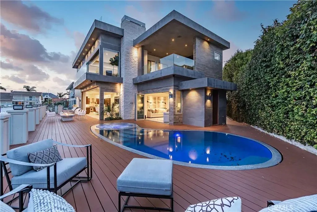 Welcome to the epitome of luxury living at 3342 Bounty Circle, located in the prestigious Huntington Beach, CA. This contemporary masterpiece, rebuilt with meticulous attention to detail, offers over 100 feet of water frontage and spans 4579 square feet of exquisitely designed living space. Upon entering, youll be greeted by a grand foyer with soaring ceilings and custom architectural accents, setting the stage for the elegance that lies within. The main level features a seamless flow between formal and informal living areas, perfect for both intimate gatherings and grand entertaining. The gourmet kitchen is a chefs dream, equipped with top-of-the-line appliances, premium finishes, and a spacious center island. With 12-foot ceilings in the great room and kitchen, this area exudes openness and grandeur, enhancing the overall ambiance. Adjacent to the kitchen, the inviting family room boasts a cozy fireplace and panoramic views of the lushly landscaped grounds. The sumptuous primary suite serves as a sanctuary of relaxation, complete with a luxurious spa-inspired ensuite bath, an approximately 400 sq ft private balcony, and a spacious walk-in closet. The primary bedroom also features wall-to-wall glass sliders opening to a private balcony with stunning 180-degree views of the channel. Outdoor living is elevated to an art form in the expansive backyard oasis, where resort-style amenities abound. From the sparkling pool and spa to the meticulously manicured gardens and al fresco dining areas, every detail has been curated to evoke serenity and sophistication. Additionally, the