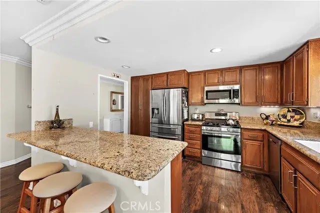 Nestled on a peaceful cul-de-sac, this immaculate Rosa floorplan home offers 1,503 square feet of refined living. Featuring 3 bedrooms, 2 bathrooms, and an attached 2-car garage, this residence is designed for comfort and elegance. The kitchen, highlighted by granite countertops and an island, opens seamlessly to the dining area, creating a perfect space for entertaining. The living room is cozy with a fireplace, while the primary bedroom boasts vaulted ceilings and an en-suite, newly remodeled bathroom with a walk-in shower. Enhancements such as crown molding, two-tone paint, and scraped, textured ceilings add sophistication throughout. Newer windows and HVAC ensure energy efficiency, and the garage provides pull-down ladder access to a spacious attic for additional storage. Situated within a 55+ community that spans 484 acres of scenic hills and mature trees, this home enjoys the benefits of two recreation centers featuring pickleball, tennis, a pool, spa, gym, and clubhouse. Association services include front yard maintenance, trash pickup, and exterior painting, offering a maintenance-free lifestyle. As a member of Lake Mission Viejo, you'll also have access to swimming, fishing, sport courts, and picnic areas, making this a perfect place to call home.
