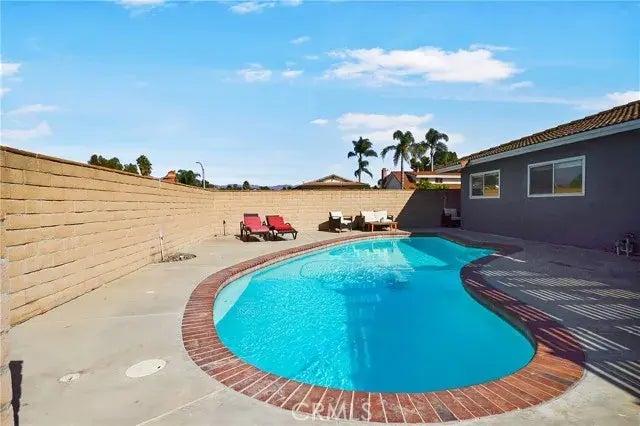 Nestled on a large corner lot along a single-loaded street, this charming single-level home offers 1,574 square feet of living space, featuring 4 bedrooms and 2 bathrooms. The updated kitchen has been expanded and upgraded with Laminate floors, granite countertops, and newer appliances, flowing seamlessly into the family room for an inviting open-concept layout. The family room is enhanced with recessed lighting, crown molding, and surround sound. Both bathrooms have been tastefully remodeled, with the master bath now featuring a large expanded travertine shower. The backyard is perfect for entertaining, featuring a large heated pool with a safety fence and customizable pool lights for multiple light show options. Additionally, the home offers optional washer and dryer, solar panels for energy efficiency, and an EV charger outlet in the garage. For extra convenience, the home has been fully re-piped with PEX piping, features a newer water heater, blown-in insulation, and LED lighting throughout. Gates on both sides of the house provide added security, and ceiling fans are installed in all bedrooms, the living room, and the dining room. Located within the highly sought-after Saddleback School District and just a short distance from Costeau Park, this home combines modern comfort with a prime location.