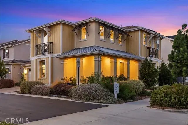 Nestled in the sought-after Beacon Park community, this stylish Melody Plan One residence offers prime location and impeccable modern living. Boasting 4 bedrooms and 4 bathrooms, the home features stunning designer hardwood flooring throughout the main level. The gourmet kitchen is a chef's delight with slab granite countertops, a luxurious glass tile backsplash, stainless steel appliances, white shaker cabinets, and a spacious central island with seating for four. Ideal for versatility, the layout includes three bedrooms upstairs and one downstairs, perfect for guests, extended family, or a home office. The expansive primary suite impresses with a spa-like bathroom featuring dual vanities, a soaking tub, a separate step-in shower, and a large walk-in closet. Enjoy seamless indoor-outdoor living with a comfortable California Room with slate stone flooring, opening to lush foliage and elegantly landscaped surroundings. Additional highlights include recessed lighting, crown molding, plantation shutters, an upstairs laundry room with sink and extra cabinets, home automation, low VOC interior paint, and an energy-efficient tankless water heater. Convenience is key with direct access to a 2-car garage with epoxy flooring, tons of cabinet storage, plus driveway parking. A charming wrap-around porch invites relaxation at the front of the home, perfect for enjoying time with friends and family. Located just steps away from Beacon Park Elementary/Middle School (K-8), Award Winning Irvine Unified School District, The Pools Poolhouse & Veranda, fitness parks, sports courts, BBQ areas,