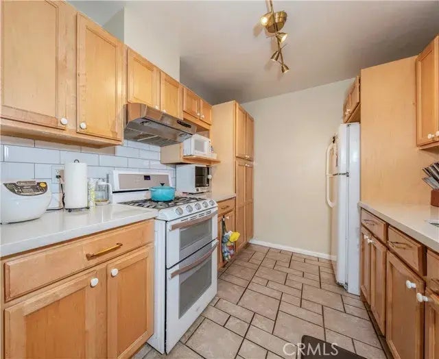 Located in a gated community, this upgraded two-bedroom, one-bathroom condo on the second floor offers a thoughtfully designed living space. Step into a spacious private patio, perfect for al fresco dining, entertaining, or simply unwinding. The kitchen is a standout feature, boasting upgraded quartz countertops, a custom tile backsplash, pull-out trash and shelves, and a convenient double dishwasher. The generously sized dining room is ideal for hosting guests, while both bedrooms offer the convenience of closet organizers. Additional enhancements include a whole house fan, a recently added AC condenser, dual-paned windows, elegant tile floors, new hardware in the shower, and ample storage throughout. The in-home washer area is situated for a stackable washer and dryer. Moreover, the unit includes a spacious storage area near the garage, one parking space, and a detached single-car garage with epoxy flooring and custom shelving. The HOA amenities include a sparkling community pool, paid water, trash/sewer, and grounds maintenance. Convenient access to the 22, 5, 57 & 405 freeways. Centrally located less than 6 miles from Disney, Knotts, and approximately 10 miles from the ocean.