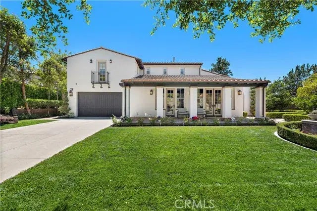 Newly upgraded and remodeled, this undeniably upscale residence blends classic elegance with modern sophistication. The magnificent home is embraced by a premium corner site at Arboledo in the guard-gated enclave of Covenant Hills in Ladera Ranch. Bordering only one direct neighbor and across the street from a beautiful park, grounds extend approximately 12,387 square feet, allowing generous space for a swimming pool, putting green, built-in BBQ island, brick decking, an orchard with formal boxwood hedges, an open-air fireplace, large front lawn, mature shade trees, and a long driveway leading to a three-car garage. Graced with handsome Spanish Colonial Revival architecture, the impressive residence invites guests to relax on a long, covered verandah located next to an arched entry door. An abundance of elegant updates inside inclusive of: high ceilings, New custom lighting, New Flooring throughout, amazing arched iron Pinky's door and exquisite millwork, including crown molding, window casings and custom built-ins, complement the interiors luxurious living spaces. Approximately 3,700 square feet, the two-level floorplan presents four ensuite bedrooms and four- and one-half baths. One suite is located on the main floor, another suite features a Juliet balcony on the second level, and the primary suite displays scenic views, a walk-in closet with built-ins, a sit-down vanity, two sinks, a vaulted ceiling, jetted tub and separate shower. Formal gatherings will be cherished in a dining room with two sets of French doors, and the family room is anchored by a built-in entertainm