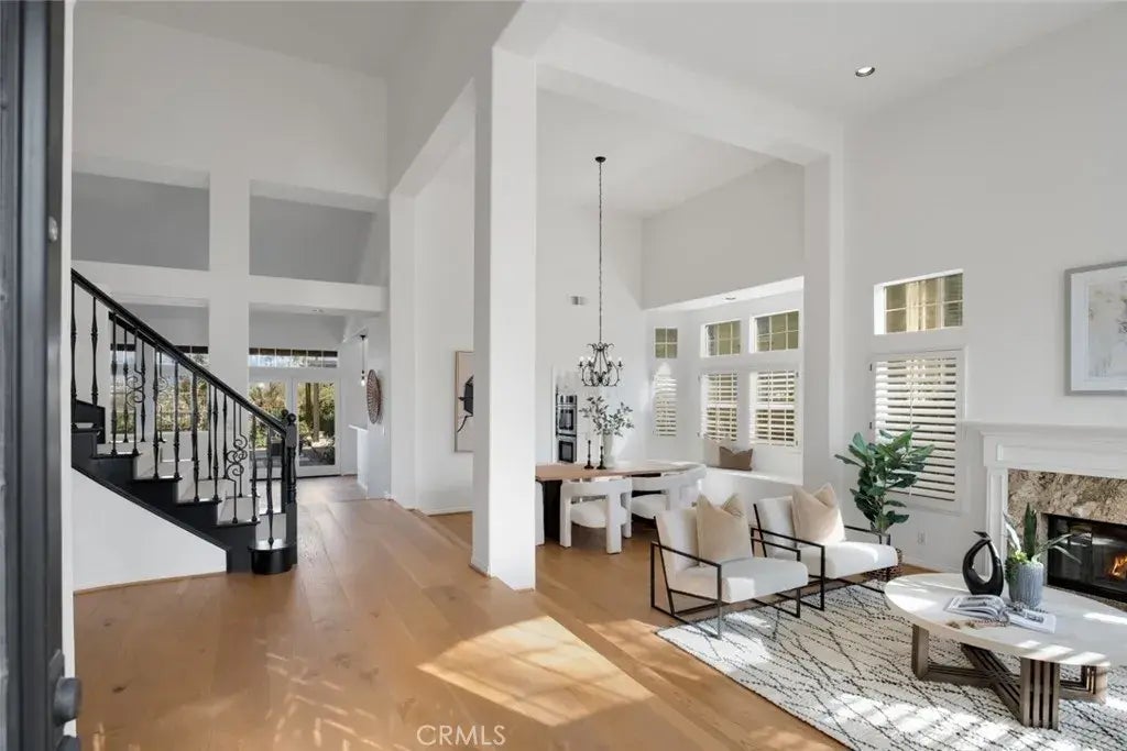 Welcome to the stunning view home, 26976 Magnolia Court, built by MJ Brock, this Classics Amorini model, truly is one of approximately 9 homes in the coveted Moulton Ranch neighborhood with a dedicated master bedroom with ensuite on the first level! The thoughtful design of the downstairs master bedroom offers convenience, privacy, and ease of access. The smart and intuitive feature is ideal for homeowners seeking ground-level living options within a two-story layout for aging in place, multi-generational living, accommodating guests, or providing separation from the upstairs bedrooms; this sought-after feature sets it apart from many other homes in the area. Showcasing the most amazing unobstructed panoramic view of city lights, Saddleback Mountain, and multiple fireworks displays during the holidays. If you love to gather with friends and family, this is the perfect home for parties and entertainment. Step inside the grand entry and be wowed by vaulted ceilings, Italian white oak wood floors, a sweeping grand staircase, and a new modern lineal loop berber carpet. The entire home is situated to take advantage of the natural light and the views from nearly every room. More high-end features include 3 elegant fireplaces, an eat-in kitchen with top-tier stainless steel appliances, a built-in Sub-Zero refrigerator, and ample storage options. Lets not forget the lush garden and mature fruit trees that add to the overall appeal. Nestled at the end of a private cul-de-sac, this luxurious 2-story home offers both unparalleled comfort and elegance. The homes layout includes 4 spaci