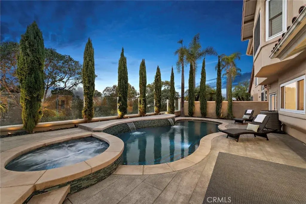 Experience coastal elegance in this meticulously renovated Laguna Niguel residence, mere minutes from the beach and boasting breathtaking views of lush hills. Nestled w/in the tranquil, gated community of Westgate Cove, this exquisite home features 3 bedrooms, 2.5 baths, a loft/office, a versatile bonus room, & potential for a downstairs 4th bedroom conversion, embodying the essence of contemporary California living. As you enter, refreshing ocean breezes flow through the open floor plan, accentuated by soaring ceilings. This updated home has been completely re-imagined. The whole-house renovation leaves no detail untouched, blending timeless charm w/ modern comfort & smart-home innovations. The chef's kitchen is a culinary masterpiece w/ sleek white cabinetry, quartz countertops, & high-end smart appliances, including a glass-front Sub-Zero refrigerator, Miele coffee machine, Dacor stove/range w/ Wolf vent hood, & a Jennair microwave/air fryer/toaster oven & dishwasher w/ WiFi connectivity. The natural transition from the kitchen leads to the family room, featuring a stunning custom marble wall & built-in electric fireplace. The luxurious master suite upstairs offers an upgraded bathroom w/ quartz countertops, a double-sink floating vanity, an expansive glass shower w/ dual shower heads & modern Kohler fixtures. 2 additional spacious bedrooms & a 2nd full bath complete the upper level. Ascend the spiral staircase to discover a cozy multimedia room perfect for a private theater or serene retreat. Interior upgrades include crystal chandeliers, energy-efficient LED lighting,