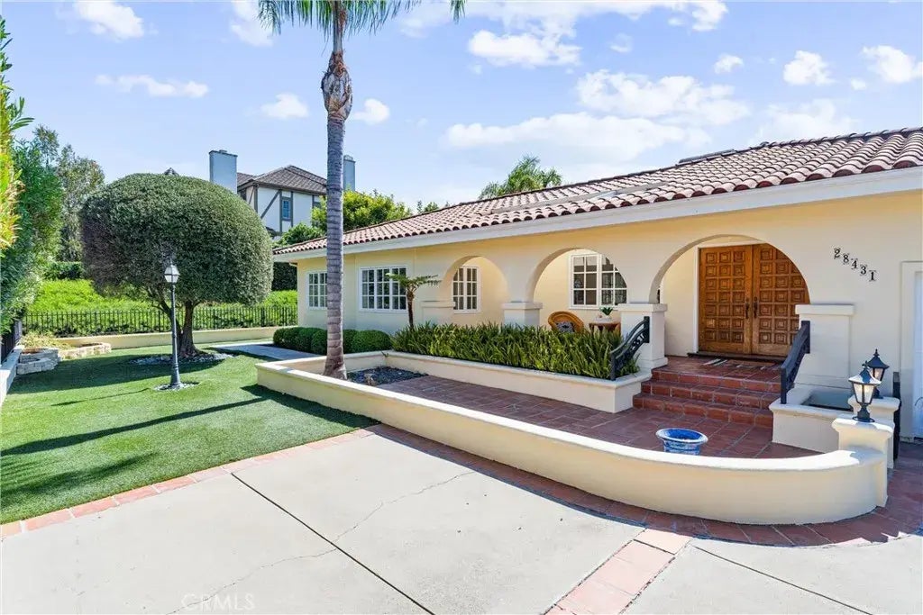 Welcome to the prestigious gated community of Hidden Mountain Estates, where luxury and tranquility blend seamlessly. This custom-built, single-level ranch-style home is nestled in the desirable upper section of the Estates, offering stunning year-round views of sunsets and the serene hills of San Juan Capistrano. Upon entering, you're greeted by a spacious living room with a beautifully tiled fireplace, perfect for cozy evenings, and an elegant arched entryway that adds a touch of sophistication to the space.This expansive three-bedroom, two-and-a-half-bath residence features rich oak wood floors throughout and sits on a large, private lot on a quiet single-sided street. The home offers a gated driveway leading to a three-car garage, ensuring both privacy and convenience.The luxurious primary suite includes a generous walk-in closet, built-in storage, and a tiled en-suite bathroom. The home features a well-equipped kitchen with a central island, abundant cabinetry, and an adjacent breakfast nook for casual dining. A versatile secondary living area offers flexibility as a formal dining room or family room. Two large guest bedrooms provide sweeping views of the San Juan Hills and share a spacious tiled bathroom. The well-designed laundry room with built-in shelving connects to the three-car garage, which also includes ample cabinetry for extra storage. Outside, the expansive private yard features lush greenery, mature trees, and a private patio, perfect for enjoying the views and peaceful ambiance. This home is your gateway to serene, luxurious living in an exclusive and hig