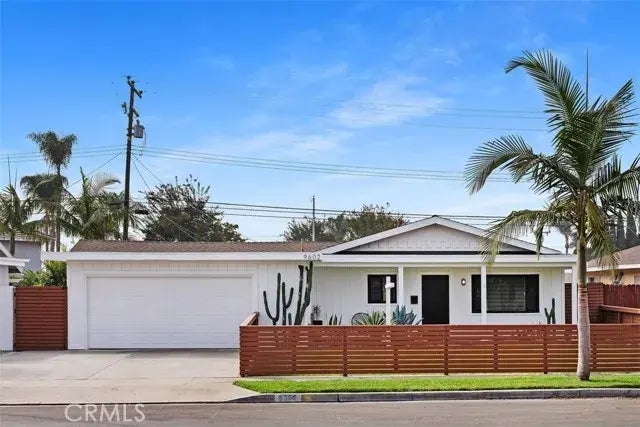Welcome to this completely remodeled Mid-Century Modern South Shores Ranch home. Nestled on the edge of a cul de sac this 3 bedroom 2 bathroom home with garage flex space and massive outdoor living space lives much bigger than its 1200sqft indoor footprint. Fully fenced front yard welcomes you to the home with an adorable front porch. Bat and board siding, black clad windows and custom black front entry door carry the modern theme as you enter the home. Inside you will find the great room and gorgeous chefs kitchen with stainless steel appliances including a gas range on the oversized quartz island with externally vented drop down hood. Custom cabinets with soft close doors and pots and pans drawers. Both bathrooms have been fully remodeled with floating vanities and custom Walker Zanger Tile work. The master bedroom includes an oversized walk in closet with custom built ins. Recessed lighting and modern features including caseless door jams throughout. The garage flexspace with 8 foot doors to the back yard allows for a kids play area, man cave/she shed or anything else you can imagine. Huge outdoor patio is great for entertaining with grassy yard and second slab including basketball hoop and skateboard mini ramp. Close to shopping, the beach, downtown and Huntington Beach's finest schools. Don't miss this one!