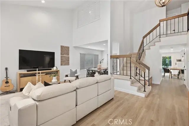 Situated on a cul-de-sac, this exquisite JM Peters home in the Woodside tract of Northwood in Irvine has been reimagined. This stunning property is light, bright, boasts five bedrooms with a large bonus room, three bathrooms and has close to 3,000 square feet of livable space on a nearly 5,000 square foot lot. As you enter the home, you are greeted with high vaulted ceilings that add grandeur as well as a formal living room. The tasteful updates throughout the home include designer touches and fixtures that complement the luxury wood-like flooring that flows throughout the main living area. The kitchen has lots of cabinets and a walk-in pantry for storage and features quartz counters, new tile backsplash and Bosch stainless steel appliances. The kitchen and breakfast area open to the family room featuring a cozy brick fireplace and two sliding doors that open to the beautiful backyard. This home is ideal for those who love to entertain and features a formal dining room. The main floor bedroom and main floor hallway bathroom make it ideal for guests. Enjoy spa-like bathrooms throughout the home including the primary en-suite with double sinks, large walk-in shower and a large soaking tub to relax. Additional features include the recessed lighting in the main living area and an oversized two-car garage. This home is located in a highly desirable area close to the famed Northwood High School. With a low tax rate, no Mello Roos and low HOA fees, this property is an excellent value for anyone looking for a unique and luxurious home that makes you feel like you are on cloud nine