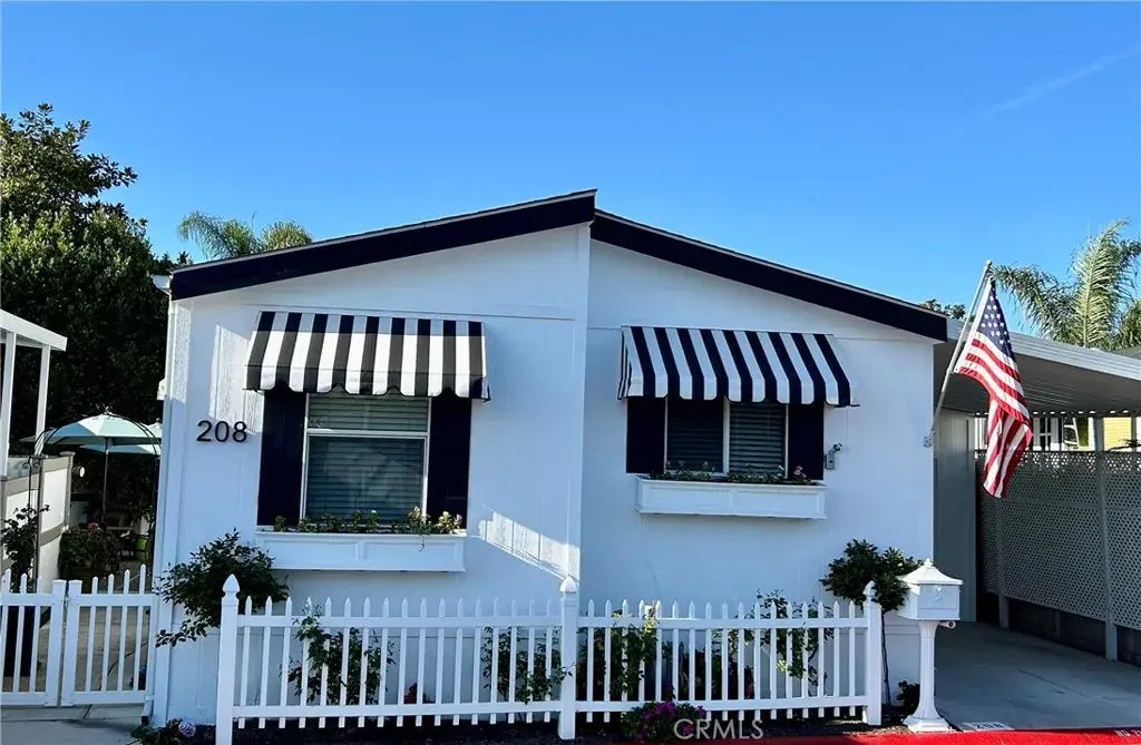Welcome to 208 Tremont Dr, a sweet and irresistible Garden Cottage tucked back inside Bayside Village Mobile Home Community, a waterside community in the heart of Newport Beach. This cozy and charming 2-bdrm 2 bath, manufactured home is the quintessential beach getaway. Upon entering through the white picket gate a charming and enchanting garden and outside patio awaits you. Fitted with a fountain, bbq, furniture, umbrellas and rose arches this beautiful outside living space is the perfect place to unwind, enjoy the ocean breezes or entertain company. Entering the home through the Dutch Door, a whimsy delight greets you with 9 ft vaulted ceilings, floral wallpaper, beautiful laminate floors and custom furniture and furnishings. This once a decorator's home is being sold turn key with everything you need to be right at home including a fully stocked kitchen, linens, towels and gorgeous appointments...just bring your toothbrush! There is air conditioning and a built-in shed at the end of the carport for added storage. Located adjacent to plenty of available guest parking and conveniently located near a green belt, pool, spa, clubhouse and gym. This home is in the blue-ribbon school of NMSD. Square footage is 1040 and is on land leased land. Monthly space rent is $3200 and includes water, sewer and trash and may fine amenities incl 2 CLUBHOUSES, 2 POOLS, 2 JACUZZIS, A PRIVATE BEACH WITH 2 GAS FIRE PITS, A GAME ROOM, A FITNESS CENTER, A DOG PARK, WEEKLY STREET SWEEPING AND NIGHT SECURITY. BOAT SLIPS, GARAGES AVAILABLE FOR RENT. ENJOY MANY FINE ACTIVITIES AT BAYSIDE VILLAGE SUCH