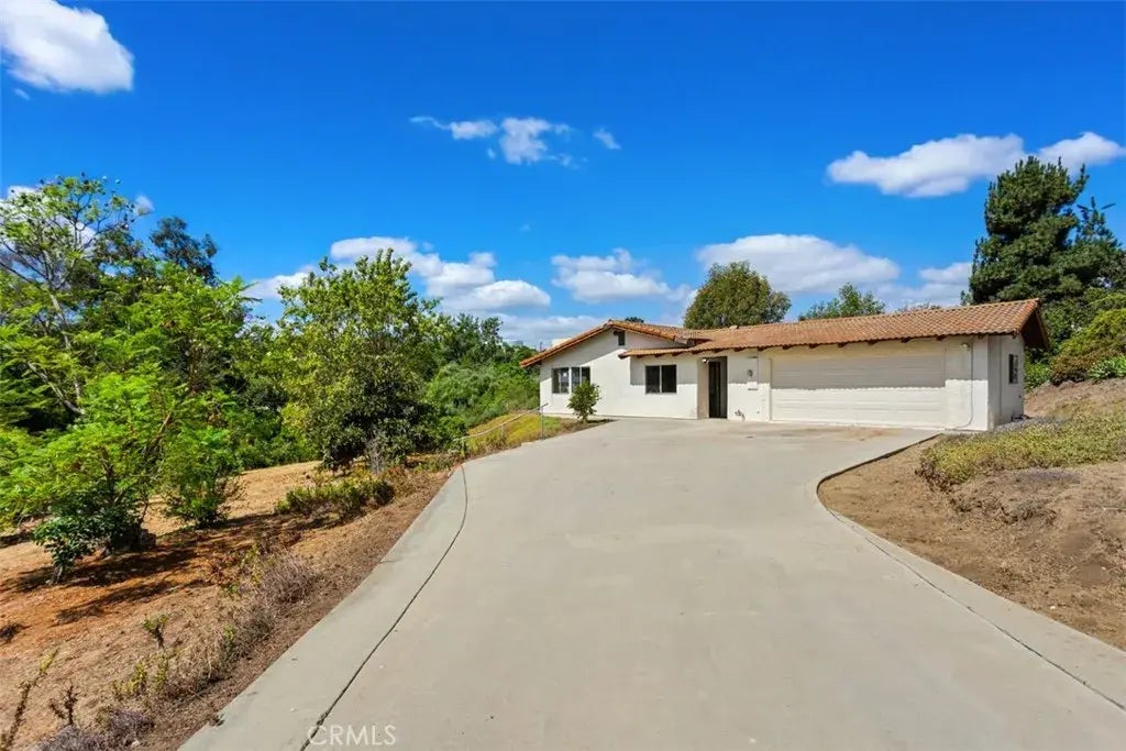 Sweet opportunity on 1.23 usable acres with fruit trees and views! This single-story ranch-style home is located in the heart of East Fallbrook and offers ample space to create your dream home and mini ranch for dogs or farm animals. It's a perfect opportunity for investors too! This home features an open floor plan, 3 bedrooms, 2 bathrooms, a fireplace, and a patio deck, with the possibility to add an ADU. The spacious yard may provide plenty of room for expansion. The property is situated on a private, recently repaved street and is secured behind a gated entry. The oversized driveway offers ample parking space for all your toys, including an RV, along with a detached 2-car garage. Enjoy the stunning sunsets, fresh breezes, and the natural beauty of this private and peaceful setting. Close to equestrian facilities, San Luis Rey Downs, miles of trails for hiking and nature walks, and approximately 3 miles from Fallbrook Town Center. Just minutes away from Monserate Winery, Live Oak County Park, Guajome Regional Park, and the lake.