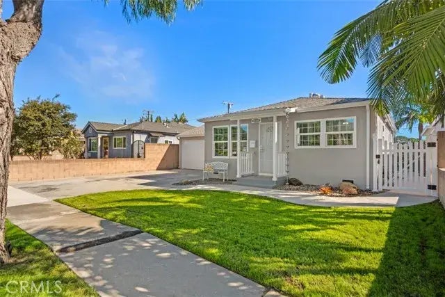 Lovely cottage-style home nestled on a tree-lined street in Bellflower. Spanning 939 square feet, this inviting property features 3 bedrooms and 2 renovated bathrooms, including an en-suite in one of the bedrooms. This home has been thoughtfully upgraded including a beautifully remodeled kitchen with quartz countertops, newly installed Samsung range and new cabinets (installed 2021). Situated on 0.138-acre lot, the backyard is perfect for relaxation and entertaining, complete with an array of mature orange, plum, apricot, fig & peach trees. The exterior of the home was updated with fresh stucco in 2024, and the interior was newly painted the same year. Other improvements: tankless water heater & recently replaced roof (2023). The property also offers a two-car garage with direct access to the home as well as to the backyard. It is ideal as a single-family residence or even an income property. Located near the intersection of Woodruff & Rosecrans, you'll have easy access to the 605, 5 & 105 freeways, making commuting a breeze.