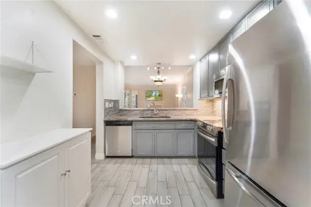 Indulge in the epitome of resort-style living at The Metropolitan, where every detail has been meticulously crafted for luxury and comfort. Recently remodeled to perfection, this residence boasts a seamless blend of opulent carpeting and exquisite stone tile flooring, creating an ambiance of timeless elegance. The kitchen is a chef's dream, featuring top-of-the-line stainless steel appliances, bespoke cabinets, and pristine quartz countertops complemented by a dazzling glass tile backsplash. A custom-made ceramic double wide sink and brushed nickel faucets add a touch of sophistication, while recessed LED lighting illuminates the space with warmth and modernity. Entertain in style around the stunning gas-fired fireplace, adorned with marble casing and a refined wood mantle, creating a focal point of unparalleled charm. With 9-foot-high ceilings throughout, the sense of grandeur is omnipresent, enhancing every corner of this exquisite abode. This exceptional unit stands out as the only one with three bathrooms, including two luxurious master suites. The first master bedroom impresses with its expansive walk-in closet and a lavish bathroom boasting a custom dual sink vanity with quartz countertops, designer sinks, and brushed nickel faucets. Step into the walk-in shower, finished with beautiful stone and pebble flooring, and enclosed in a frameless glass enclosure for a spa-like experience. The second master bedroom offers dual closets, one of which is a walk-in, and an ensuite bathroom featuring a matching custom dual sink vanity, a large soaking tub, and a brushed nickel Ro