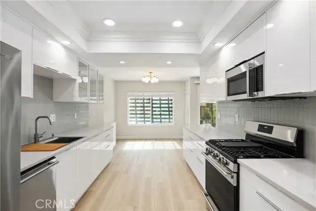 Completely remodeled from top to bottom with attention to detail. Located in a gated community close to CSU Fullerton and Troy High School. Numerous custom features with all three bathrooms designed and furnished by Kohler. Fully remodeled kitchen with expanded cabinet storage including pull-out trash bins. Fully repainted and all new floors, tile in the bathrooms and luxury waterproof vinyl in the kitchen. Lots of natural light due to windows and skylights, with brand new blinds for the windows. Spacious primary bedroom and bathroom suite. Back patio overlooks a creek frequented by ducks and herons.