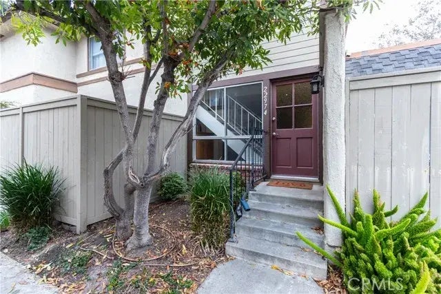 Welcome to 22974 Via Nuez. This 3 bedroom 2 story townhome is spacious with approximately 1150 square feet. Located on a quiet cul de sac, this home offers a peaceful setting. The interior has been upgraded with fresh neutral paint, crown molding and laminate flooring. The living room, dining area and kitchen all blend seamlessly. The downstairs has a half bath, The upstairs features a master bedroom and two secondary bedrooms along with a full bath. The home is well priced to give you room to add a few custom upgrades of your own. Enjoy the benefit and safety of a direct access garage that also offers hook ups for side by side washer and dryer. The enclosed patio off the dining area provides privacy for a BBQ, and al fresco dining. Close to community pool and play area as well as elementary school. Come make this your own.