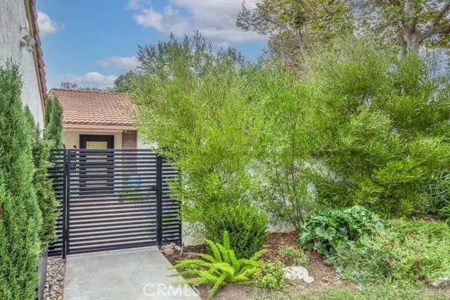 Gorgeous remodeled single-level, end-unit ANDALUZ residence in the Laguna Woods senior community. Excellent curb appeal & beautiful landscaping. This home is situated at the end of a quiet cul-de-sac far from busy roads & noisy highways. Custom front gate opens to a large tiled courtyard accented with lush landscaping around the perimeter. Courtyard extends into a space between the house & garage creating a remarkable outdoor environment perfect for large-scale entertaining, dining or simply relaxing. Custom front door with opaque glass inserts opens to the luxurious interior. Huge living room has a wood-burning fireplace, direct access to the rear patio & easily accommodates large furnishings. Kitchen is a chefs dream with large storage capacity & lots of counter space. Endless amenities including stunning custom wood cabinetry with soft-close doors & drawers, lazy susan, spice drawer, pots & pans drawers, built-in trash/recycling, stainless steel appliances & breakfast bar that seats three. Kitchen window looks onto the front courtyard. Three small windows added in dining area bring in abundant sunlight. Hallway leading from the living room to the bedrooms has been widened significantly creating a more open living environment. Large primary bedroom suite has direct access to the rear patio & efficiently organized closet space with soft-close pull-out drawers. Attractive barn door separates primary bedroom from the bathroom & closet. Either of the two guest bedrooms could serve as a home office, exercise room or arts & crafts studio. Rear guest room has direct access to th