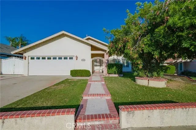 Welcome to this beautifully upgraded single-story home nestled in a quiet community. As you approach the house, you'll find a cozy, covered front porch that provides a private entry. The gated fence ensures safety and adds convenience, offering extra space for personal items like bicycles, toys, or a stroller. Upon entering, you're greeted by a spacious living room filled with natural light. To the left, you'll find the kitchen and family room, complete with a cozy fireplace. The kitchen boasts upgraded granite countertops, solid wood cabinets, and includes top-notch appliances: a built-in Kitchen Aid refrigerator, gas cooktop, oven, and microwave. Throughout the home, except for the kitchen and bathrooms, you'll discover brand-new high-quality waterproof laminate flooring, ensuring durability and style. The yard features a fenced swimming pool and spa, perfect for relaxation and entertainment. This home is ideally suited for entry-level buyers and is in moving condition. Conveniently located near schools, shopping centers, and the freeway, it truly offers the best of both comfort and accessibility.