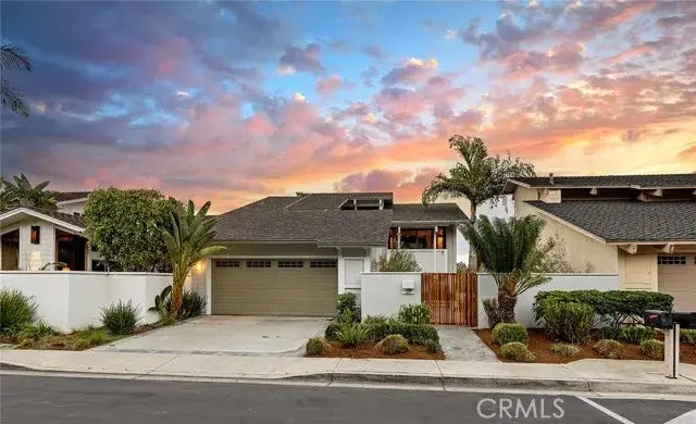 Perched within the prestigious, gated community of Laguna Woods, 17 Morning Wood Drive is a stunning mid-century gem designed by renowned architect Chris Abel. This home sits on a single-loaded street with only 88 residences, offering privacy and tranquility in an exclusive enclave. Abels signature design elements are present throughout this 3-bedroom Carmel (Model A) home, with vaulted ceilings that invite natural light and seamlessly blend indoor and outdoor living spaces. At the heart of the home is the entertainers kitchen, outfitted with quartz countertops, high-end KitchenAid stainless steel appliances, a farmhouse sink, and a waterfall island centerpiece. Light modern engineered wood flooring flows effortlessly throughout, complementing the open-concept design. The main level showcases a sophisticated living room with a marble fireplace, a bedroom with an ensuite bath and private patio, and a dining room that overlooks lush foliage. An adjacent deck provides a serene space to take in the natural surroundings. Downstairs, the master suite serves as a private retreat with its own fireplace and direct access to the backyard, complete with an in-ground spa for ultimate relaxation. The master bathroom has been thoughtfully upgraded with quartz counters, sleek cabinetry, and modern fixtures. An additional bedroom, bath, and convenient laundry area complete this level. This meticulously maintained home boasts numerous upgrades, including PEX re-piping, a solar system with an LG Powerwall, a security system, newer HVAC and furnace, and fresh exterior paint with a custom wood