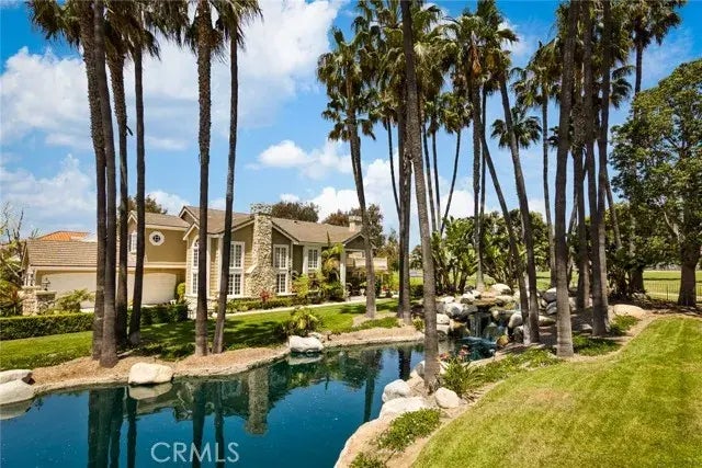 VIEWS! VIEWS! VIEWS! BEAUTIFUL FURNISHED HOME IN Guard Gated SeaCliff on The Greens, a Charming Exclusive Guard Gated Community located one block to the white sandy beaches of Huntington Beach. Once inside community you will drive past lush greenbelts and over a cobblestoned bridge that leads you to this very special home that sits next to a beautiful tranquil lake pond surrounded by towering palm trees and the sounds of waterfalls. Exterior features massive windows/Shutters & lightly colored paved oversized driveway with a three car garage. Follow the walkway to the garden courtyard. Sit, relax & enjoy the California sunshine, Prime Golf Course Views and a peaceful lake Pond with expansive vibrant evergreen grounds which adds to the sense of serenity. Enter this beautiful home thru Rich Mahogany Double Doors. Formal Dining Room w/French doors open to a sunlit lush atrium. Formal Living room w/Fireplace opens to a glass enclosed Sunroom (not included in home SF) flooded with natural light that will make any artist bring out their paintbrushes or a place to get lost to read your favorite novel. FOUR Bedrooms are all upstairs (one can be used as an office with built ins) and three full bathrooms upstairs plus a powder room downstairs. Hardwood Floors and Newer Designer carpeting. Gourmet Island Kitchen with a separate casual dining area or office with French doors that lead out to private Atrium. Large Inside Laundry Room with Ample Storage. Light and Bright Family room enhanced by an oversized romantic fireplace and high ceilings. Huge primary suite features two walk in clos
