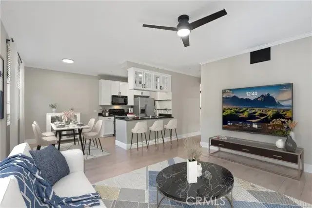 Charming Upgraded Ground-Level Unit with Garage! Discover the perfect blend of comfort and style in this upgraded ground-level unit, featuring no stairs and a convenient one-car garage. The modern kitchen boasts shaker-style cabinets, sleek stainless steel appliances, and elegant granite countertops, making it a culinary delight. Enjoy the inviting ambiance created by upgraded flooring, baseboards, and crown molding throughout most of the home. The spacious main bedroom offers a generous walk-in closet, while the second bedroom provides flexibilityplease note it does not include a wardrobe closet. With large windows flooding the space with natural light, this home feels bright and airy. Step outside to your private patio, complete with a storage closet for added convenience. Partial repiped (new plumbing) HOA managed. The laundry closet can fit a full-size side by side washer and dryer, ensuring ease of use. Located in the well-designed Canyon Point community, residents can take advantage of the pool, spa, and fitness center. This unit is conveniently situated near schools, parks, entertainment options, and a variety of dining experiences, from casual to fine. Plus, enjoy easy access to the freeway and toll road for effortless commuting. Dont miss out on this gemschedule a viewing today!