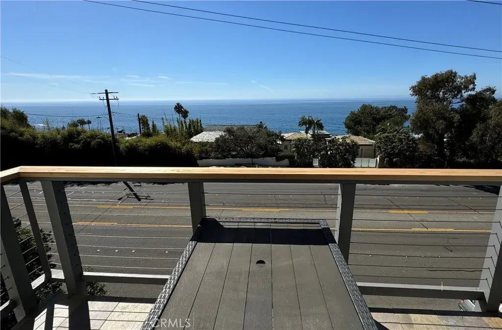 Wake up every morning and enjoy your coffee on your private balcony with the Pacific ocean as the perfect backdrop. This spectacular corner unit offers two bedrooms, two bathrooms, a tremendous view of the ocean from the primary living room and both bedrooms. A corner unit means an extra window with an ocean view. This unit is newly remodeled, with excellent touches. A modern kitchen with quartz countertops and island, tile floors throughout, white cabinetry, garbage disposal, indoor stackable washer/dryer, single car garage, two full bathrooms. Mirrored sliding door closets and ceiling fans in each bedroom. Throw in a shared common area for down time with friends and family or just me time for yourself. The location is pure Laguna Beach with beach access near by, a trolley stop which opens up the ability to take advantage of world class shopping, restaurants, art galleries, and spas. If you are looking for the Laguna Beach life style this is it! Make this one a must see!