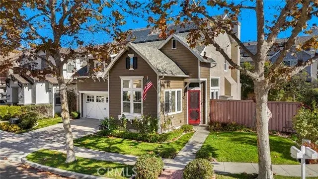 This beautifully renovated single-family home, located in the desirable Oak Knoll Village of Ladera Ranch, offers a bright and inviting atmosphere with modern upgrades throughout. Nestled on a quiet cul-de-sac, the home boasts a charming grassy front yard and an attached two-car garage with built-in storage. Upon entering, you'll find an open dining area with soaring two-story ceilings and French doors that lead to the side yard, filling the space with an abundance of natural light. A stunning wood beam paneling, recently added in August 2024, creates a seamless flow between the dining and living rooms, enhancing the open-concept layout. The home also boasts plantation shutters throughout, which were installed in August 2018, and new luxury vinyl flooring and baseboards on the first floor, completed in January 2024. The formal family room, located to the left of the entry, features new custom-built cabinetry in both the family room and dining room nooks, installed in March 2024. The living room is anchored by a beautiful fireplace, perfect for cozy evenings. Extra storage space is available with an under-stairs closet, adding practicality to the first floor. The chefs kitchen is a highlight of the home, featuring a French marble topped island with bar seating, abundant cabinet space, and a farmhouse sink. Newer GE Caf appliances and recessed lighting. The sliding glass doors open to a private side, ideal for entertaining with private patio and grassy area. Upstairs, the primary suite serves as a true retreat with large windows and fresh carpet. The ensuite bathroom offers a