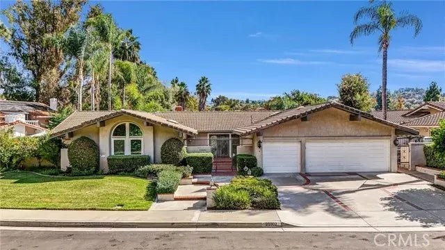 This beautiful 4-bedroom, 3.5-bathroom single story home, has approximately 3355 square feet of well-designed living space. Resting on close to a half-acre lot, this single-story home with generous outdoor areas, lush yard, fruit trees and golf course view is a rare gem in the community. A perfect place for indoor-outdoor living and entertaining. Upon entry thru a private courtyard, you will be greeted by leaded glass doors that open to a light and bright formal living room featuring a cozy fireplace and French doors that flow to the back patio and stunning back yard. The spacious Kitchen leads to a breakfast nook and opens to the family room. The bright and airy family room presents a relaxed setting with a lovely wood beamed ceiling, natural light from all directions, and sliding doors leading to the patio and yard. The large dining room can accommodate an oversized dining table, creating an entertainer's dream space. The sizeable main bedroom has an in-suite bathroom with separate tub and shower, double sinks, generous closet and French doors that lead to a separate patio area. There are 3 other generously sized bedrooms, one with a connecting bathroom. The home also has an inside laundry room with sink. Sitting on a single loaded street with street parking, the attached spacious 3 car garage and good-sized driveway allows for ample parking convenience. Desirably located close to schools, shopping, and freeway access.