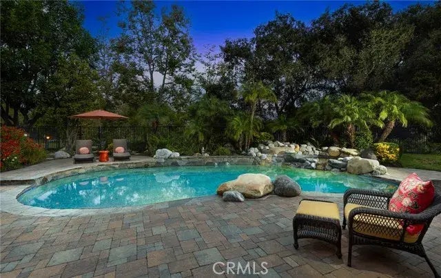 Stunning Entertainers Home with Pool and Spa - Resort-Style Living! This upgraded home in the desirable Arroyo Vista Tract of Rancho Santa Margarita is perfect for entertaining and relaxation. Located on a quiet cul-de-sac, this property offers spacious living with a luxurious touch. The gorgeous living room features a vaulted ceiling, plantation shutters, beautiful flooring, and a formal dining area. A chefs delight, the kitchen boasts white cabinetry, granite countertops, a farm-style sink, a 5-burner gas range, stainless steel appliances, and a scenic backyard view. The cozy family room includes a gas fireplace with stacked stone, plantation shutters, and a ceiling fan. On the main floor, theres a versatile bedroom currently set up as an office with a built-in desk and shelves, a guest bathroom with a shower, and a laundry room. Upstairs, the primary suite offers expansive views of the hills, vaulted ceilings, plantation shutters, a ceiling fan, mirrored closet doors, and a cedar-lined walk-in closet with shelving. The en-suite bathroom features dual vanities with granite countertops, glass sinks, a glass-enclosed shower, and a separate tub. Two additional bedrooms and an updated guest bathroom with a shower complete the second floor. The backyard is an entertainers paradise, featuring a pool with a water feature, a spa, lush landscaping, paver decking, a large lot with a side yard, and stunning views of the hills, park, and neighborhood. Additional features include; updated AC, some upgraded windows and a three car garage with direct access. Enjoy the lifestyle offered