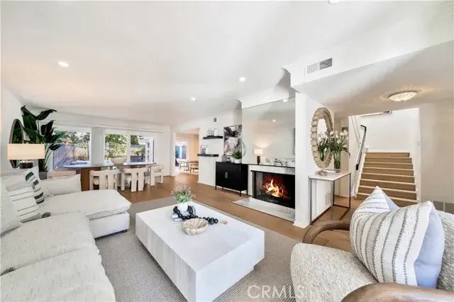 Welcome to 7125 Little Harbor Drive! Nestled in the highly sought-after Beachwalk community, this stunning home is just a few blocks away from the sun-kissed sands of Huntington Beach. This rare Plan "E" offers four spacious bedrooms and three beautifully appointed bathrooms, including a convenient first-floor bedroom with a full upgraded bathroom that features its own private entrance from the garage. As you step inside, you'll be greeted by a bright and airy living room filled with natural light, complete with a cozy fireplace that creates a warm ambiance. The open layout seamlessly flows into the dining area and a chef's dream kitchen, showcasing stainless steel appliances and elegant white oak wood floors throughout. Step outside to discover a generous backyard patio, perfect for entertaining guests or enjoying a peaceful evening under the stars. Upstairs, you'll find three inviting bedrooms, all featuring vaulted ceilings. The primary suite is a true retreat, boasting dual closets and a stylishly updated bathroom. Stay cool during warmer days with central AC, or take a dip in one of the five community pools after a fun-filled day at the beach. Parking is a breeze with a full driveway and an attached two-car garage with direct access, complete with an electric car charger. Additional highlights include an upgraded electrical panel and recent community improvements, including fresh paint and a durable 50-year roof. This lovingly maintained home is ideally located near California distinguished schools, vibrant downtown shopping, delectable restaurants, The Huntington Club
