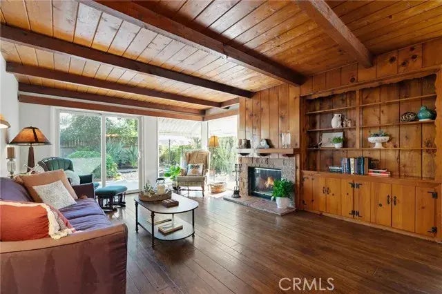 Nestled in the heart of North Hollywood, original charm remains untouched in this character filled and meticulously maintained 3 bed 2 bath single owner home! Pride of ownership exudes as you step inside and are welcomed by a mix of timeless charm and modern comfort. The freshly painted walls and neutral color palette throughout are ready for you to add your own personal touches. Revel in the original details that greet you as you enter the open and airy living space, showcasing the elegant wood beam ceiling, great condition screw and plug oak wood flooring, a cozy fireplace and original built-ins. The large picture windows show off the spacious backyard and invite an abundance of natural light to stream in. The kitchen is conveniently located off the garage and highlights original 1950s detail with the oak cabinetry and eat-in breakfast counter, which can be enjoyed as-is or updated to suit a more modern taste. The roomy primary bedroom is situated at the back of the home, delivering both privacy and views of the tranquil backyard. You will also appreciate the large closet featuring extra over-head storage, The two bathrooms each present their own unique design, one has been redone with beautiful venetian plaster walls, an earthy color palette and natural stone details. The 2nd bathroom offers classic 50s charm with original tile and plenty of storage in the spacious vanity, and additional linen closet. As you head out the sliding doors off the living room the spacious, fully fenced backyard greets you with mature landscaping and plenty of space for large gatherings, relax