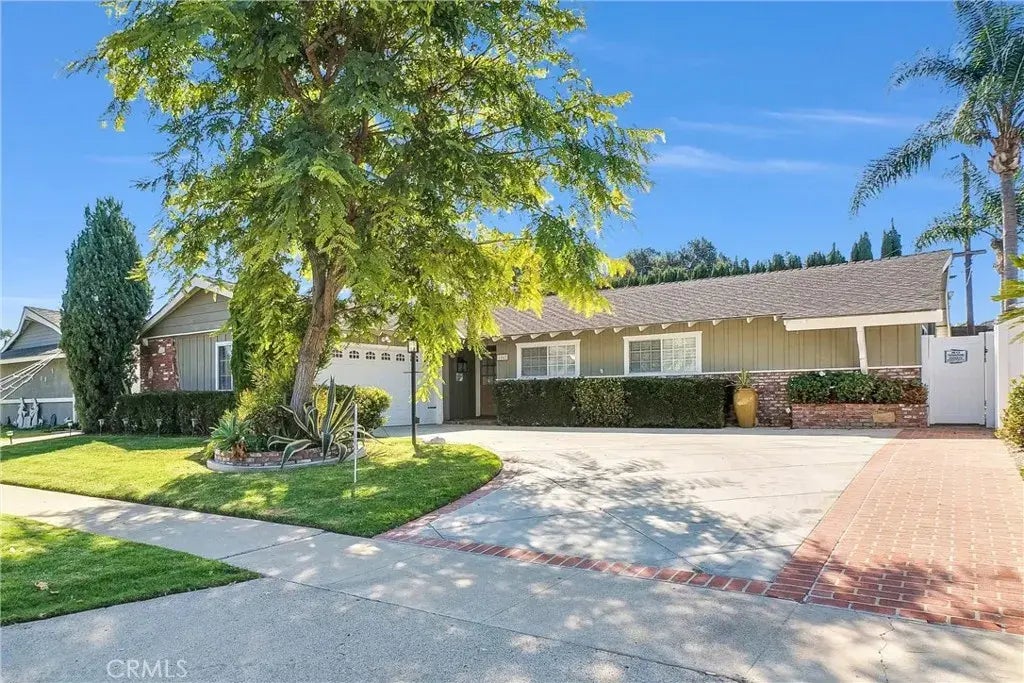 Nestled in the heart of Tustin, this beautifully remodeled Craftsman-style pool home blends classic charm with modern comfort. The home has been meticulously updated inside and out, offering remarkable curb appeal with a freshly manicured lawn, lush greenery, and an extra-long driveway. This open-concept floor plan features 4 spacious bedrooms, 2 full baths, and 2,003 sq. ft. of interior living space, all situated on a generous 7,215 sq. ft. lot with a sparkling pool. The interior layout includes a separate formal living room with a cozy fireplace, a dining room, and a family room. The gourmet kitchen is a chef's delight, boasting shaker wood cabinets with pull-out and soft-close features, granite countertops, and state-of-the-art stainless steel appliances, including a double-door refrigerator and washer & dryer. The primary suite offers a beautifully remodeled bath with a shaker wood vanity, quartz countertops, dual sinks, and a designer walk-in shower. The hall bath is equally impressive, featuring a shaker wood vanity, quartz countertops, and a stylish soaking tub. Additional highlights include fresh paint, new flooring, upgraded baseboards, modern light fixtures, water filter and more. Step outside to your private oasisan entertainers dream with a sparkling pool, spacious patio, and mature landscaping for added privacy and tranquility.