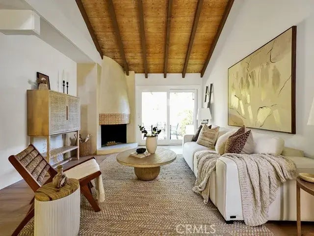 Welcome to this stunning, newly renovated modern Spanish-style home nestled in the desirable Captains Hill community. A cozy courtyard adorned with fresh white roses invites you into this beautifully updated property. Step inside to discover an abundance of natural light streaming through oversized dual-pane windows and new sliding glass doors, illuminating the new white oak luxury vinyl plank flooring throughout. The home boasts LED recessed lighting and designer fixtures, giving it a warm, contemporary ambiance.The newly designed kitchen is a dream, featuring elegant flat white oak panel cabinets, stainless steel appliances, quartz countertops, and custom floating shelves. Adjacent is a charming breakfast nook, perfect for enjoying morning coffee. The living room is anchored by a stunning fireplace with smooth stucco and original modern Spanish tile accents, creating a cozy focal point. The beautifully curved staircase, with refinished iron railings, leads you upstairs to vaulted ceilings in the master bedroom and living room, adding a touch of grandeur. The bathrooms are a sanctuary with designer tile, modern plumbing fixtures, and designer light fixtures. The guest bathroom has been upgraded with a new oak vanity and soaking tub while the master bathroom has been upgraded with white shaker cabinets, quartz countertops, and crystal-clear Starphire shower glass enclosure accompanied by a grand skylight. Enjoy modern convenience with a smart doorbell and thermostat. Step outside to your private backyard patio, newly outfitted with pavers, ideal for relaxing or entertaining