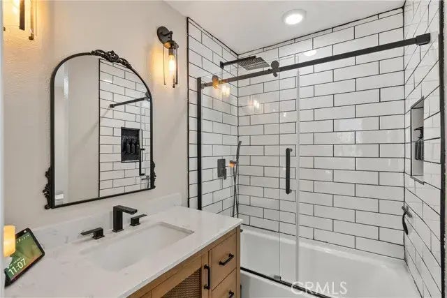 DON'T MISS THE VIDEO TOUR! FHA APPROVED!! Step into this gorgeous, single-level home, nestled in Garden Grove's exclusive GATED COMMUNITY of Greenbrier Terrace. Enjoy the rare conveniences this stunning home has to offer, which includes POOL VIEWS, a 2-car garage, interior laundry, AC, and beautifully remodeled kitchen and baths! The stunning kitchen awaits with quartz counters, custom painted cabinetry, gold hardware, stainless appliances, and a convenient breakfast bar. The stunning bathroom has direct access from the primary bedroom and the living area, and features fully remodeled finishes, beautiful vanities, and a newly remodeled tub/shower. The spacious living room is enhanced by a gas fireplace that leads you to your oversized private patio. Additional highlights include a large primary bedroom with its own fireplace, a generous sized dining area, and so much more! The community features 5 gated entries, 4 pools and spas, plus private parking patrol. The HOA covers water/sewer, trash, and common area maintenance. Perfectly situated near freeways, shopping, dining, parks and schools. This turnkey home is ready for you to move right in!