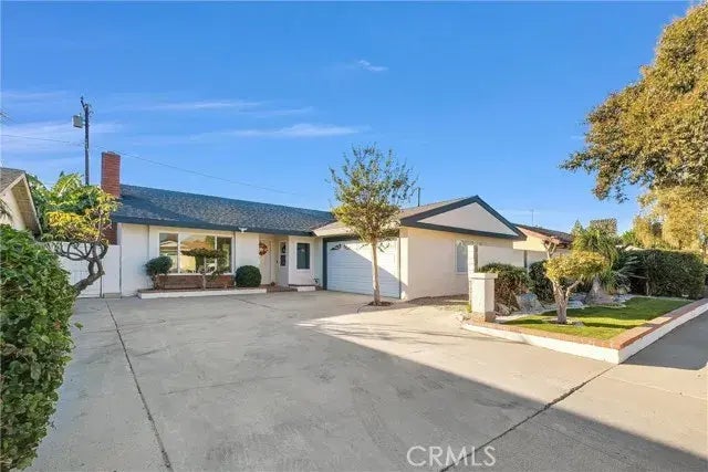 This beautifully REMODELED SINGLE-FAMILY HOME offers 3 bedrooms, 2 bathrooms, and a large, attached 2-car garage with direct access. The property also provides additional driveway space, accommodating up to four standard vehicles or two cars and an average-size RV. The interior features a spacious living room with high vaulted ceilings and a cozy fireplace, complemented by upgraded honey maple-toned laminate wood flooring that adds warmth and brightness throughout. The kitchen is a chefs delight, showcasing quartz countertops, a breakfast island with seating for three, a full subway tile backsplash, white maple wood cabinetry with soft closing hinges, a farmhouse sink, a large-capacity refrigerator, and modern stainless-steel appliances. In the dining area, a new, expansive sliding glass door with a vaulted ceiling opens to the backyard, enhancing the indoor-outdoor fill with natural light. All windows have been upgraded to double-pane with new coverings, ensuring energy efficiency and privacy. All lighting has been upgraded to recessed LED lights throughout. The master suite is highlighted by three large bay windows that fill the space with natural light, a spacious walk-in closet, and a fully remodeled en-suite bathroom featuring a quartz countertop and walk-in shower. The additional two bedrooms are well-sized and share a second bathroom, which includes a quartz countertop, and a tiled shower over a soaking tub. A brand-new, high-capacity washer and dryer are included for tenant convenience. The expansive, low-maintenance backyard offers an ideal setting for entertaining