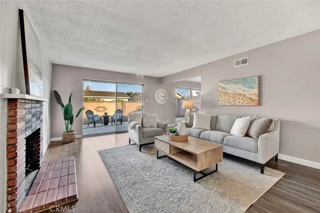 Looking for a single story home with a blend of comfort, style and opportunity? Look no further than this detached, family home offering comfortable, modern living with the potential for future expansion. With 3 good size bedrooms and 2 full bathrooms, the 1288 sq ft house feels bright, airy, and thoughtfully laid out. Look forward to toasty winter evenings in front of the living room fireplace and know that the central AC will ensure a cool summer from start to finish. Let the new laminate flooring and interior paint welcome you into this freshly updated, move-in ready home . Double sliding doors open to a spacious backyard with expansion possibilities such as a larger patio, a pool or ADU or your own orchard. Enjoy the separate dining area connected handily to a galley-style kitchen with laminate counters, ample cabinets and direct access to the side yard. Appreciate the additional space in the kitchen, created by the thoughtful location of the washer and dryer to the garage. Recent updates to the house include installing central AC and replacing the heater, furnace, and garage door, all within the last five years. An ensuite bathroom featuring both a tub and shower provides privacy for the main bedroom while the second full bathroom is located across the hall from the two additional bedrooms. Parking for multiple vehicles is provided by a two car garage with a newer roll-up door plus an extra wide extended driveway. This interior tract, cul-de-sac location in a small, quiet neighborhood adjoining Huntington Beach offers the convenience of nearby schools, shopping, restau