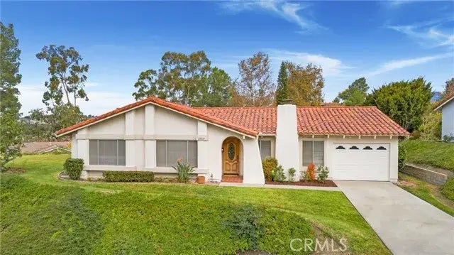 *FIRST TIME ON THE MARKET IN 51 YEARS!* Nestled in the prestigious, guard-gated 55+ community of Casta del Sol, this exceptional single level home offers unparalleled privacy from every vantage point due to the ideal, unique location of the corner lot. Set on a quiet, single-loaded street and bordered by a lush, grassy common area that feels exclusive to this property, this sunny, south-facing home is truly a rare find. Boasting freshly painted white walls throughout, this light filled Flora model 3BD/2BA detached home is inviting from the moment you step inside. Large windows in every room flood the home with natural sunlight, accentuating the beautiful wheat-colored engineered wood floors. The spacious living room features a rustic fireplace, vaulted ceilings, new recessed lighting and is seamlessly connected to the third bedroom, currently used as an office, with double-door access. The open layout extends to the formal dining room which flows out to an expansive, covered, tiled patio. Relax and enjoy the serene city light, tree and hill views from your secluded back yard that extends to the huge, well-manicured lawn area which offers the perfect retreat. The kitchen is bright and cheerful with new recessed lighting, a gas range, dishwasher and a movable center island. Down the hall you'll find a full bathroom and a secondary bedroom with generous closet space as well as the primary bedroom suite, complete with two large mirrored closets and an accessible walk-in shower with grab bars. Additional features include direct access to a single car garage with ample cabinet sp