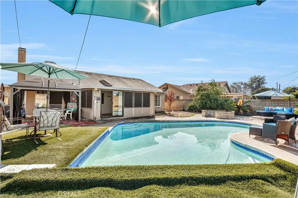 This stunning single-level home features a beautiful pool and a huge backyard, ideal for outdoor living and entertaining. Upgrades include solar panels, updated vanities and countertops, newer kitchen appliances, smooth ceilings, and updated systems such as the roof and A/C. The expansive yard includes a recently upgraded heated saltwater pool system, a cozy fire pit, plenty of space for activities, and potential to add an ADU. A gated front courtyard enhances privacy and adds charm. Inside, the home boasts a beautifully remodeled kitchen with newer stainless steel appliances, quartz countertops, recessed lighting, and a skylight that fills the space with natural light. The living room features a dramatic fireplace, while the dining room opens to a sunroom with tranquil pool views. The primary suite offers mirrored closets and a remodeled ensuite bathroom, complemented by two additional bedrooms and a secondary bath for added flexibility. Conveniently located near shopping, dining, major highways, and top-tier amenities, this home is also close to biking and jogging trails, Whiting Ranch Wilderness Park, Etnies Skatepark, Lake Forest Sports Park and is less than 10 miles to Laguna Beach. Experience luxury, comfort, and an unbeatable location in this must-see property!