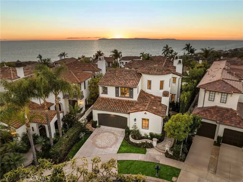 This newly renovated gem in the prestigious guard-gated community of Crystal Cove offers is a rare combination of elegance, charm, and privacy. Set on a unique pie-shaped lot spanning 7,621 +/- square feet, this 5 bedroom, 5 bathroom residence provides an expansive layout, captivating views, and a tranquil ambiance. This stunning home invites you in through a grand foyer with soaring ceilings and a gracefully curved illuminated staircase. The wood floors flow seamlessly throughout the main living spaces. The heart of the home is the vast open-concept great room, dining area, and family roomperfect for both relaxed living and elegant entertaining. Breathtaking ocean views are framed by a picture window at the far end of the great room, where the horizon meets the beauty of Catalina Island. The fully renovated kitchen is a dream, featuring a porcelain-topped island with wood cabinets, a Wolf 6-burner range with dual ovens and a grill, a wine cooler, and custom cabinetry and a cozy dining nook adjoins the courtyard. This home is designed with both style and function in mind. The 5 spacious bedrooms, 4 of which are en suite, with two conveniently located on the main floor, offer flexible options for use as a home office or gym. Upstairs, two secondary suites and the luxurious primary suite provide ultimate comfort and privacy. The expansive primary suite feels like an upscale boutique hotel with a private covered deck that offers stunning white-water views stretching to Palos Verdes. Inside, the spa-like ensuite bath boasts a soaking tub, dual vanities, a makeup vanity, and a g