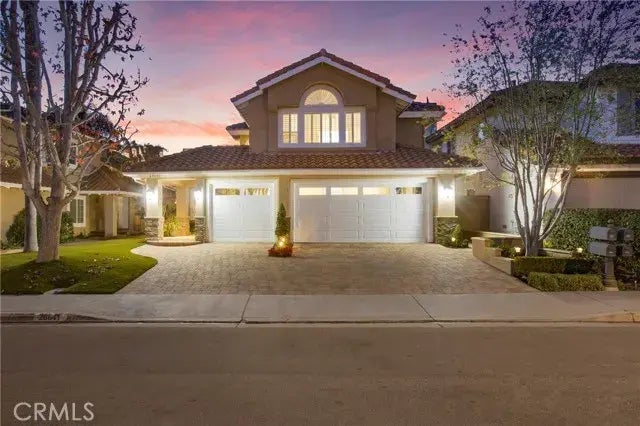 Panoramic sunset views at this stunning home in Rancho Niguel near the end of the cul de sac. Located in a highly sought-after neighborhood, this property offers a wealth of exceptional features and improvements, creating a true family haven with 5 bedrooms and 3 full bathrooms. One bedroom is conveniently located on the main level and used as an office & boasts a custom Murphy bed, has custom mill work, cabinetry and desk with quartz countertop. Beautiful wood flooring with baseboards throughout the main level with custom wainscoting and crown molding throughout the home. The living room's flooring was thoughtfully raised to match the entryway and adjacent living spaces, providing a seamless flow and boasts a fireplace with custom mantle. The family room features a fireplace as well with mantel and cabinetry plus additional custom cabinetry installed to house the TV and provide additional storage. The downstairs bathroom was refreshed with new tile, has new travertine tile flooring, custom vanity and mirror. The kitchen received a comprehensive overhaul in 2020 including custom cabinetry with additional pantry space added, featuring custom cabinets, elegant quartz countertops, and top-of-the-line Thermador double oven plus new dishwasher, under counter microwave and gas stove top. The entire house was re piped with PEX and a soft water system is in place. Fresh paint was applied throughout the interior of the home in 2020. Custom interior doors and upgraded hardware throughout the home. Southwest facing windows and bonus room windows all replaced with double pane windows.