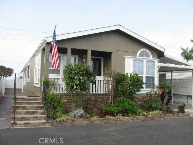 Mariners Pointe Senior Park, (55/45) Really nice home two bedrooms plus den with custom shelving, cabinets and work area. many upgrades including kitchen remodel with island and new laminate flooring. Recent exterior paint, beautiful covered entry and storage shed. Turn key appx. 4 miles from the beach at this price!